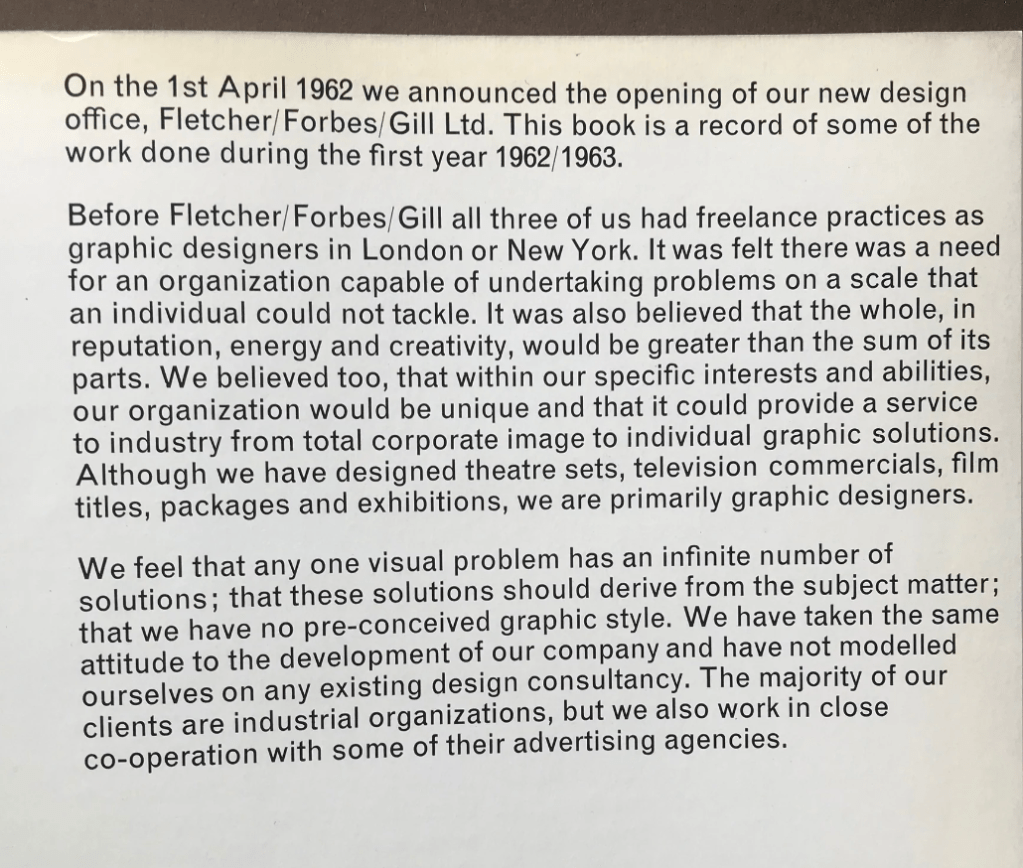 Birdsall was lecturing in the history of typography at the London College of Printing. In 1960 he had joined forces with three other designers: George Daulby, Peter Wildbur and George Mayhew, a designer who had done a lot of work for Joan Littlewood’s Theatre Workshop company. The team was named BDMW Associates.