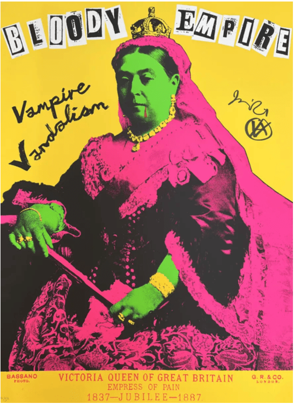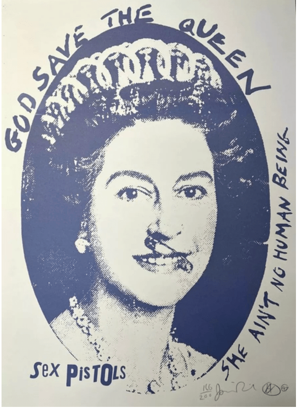 Jamie Reid helped shape the visual identity of the British punk movement with his décollage-style graphics that feature iconoclastic defacements of pop culture imagery and letters cut from newspaper headlines arranged like ransom notes.