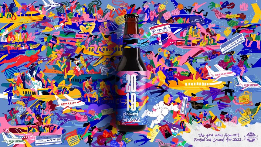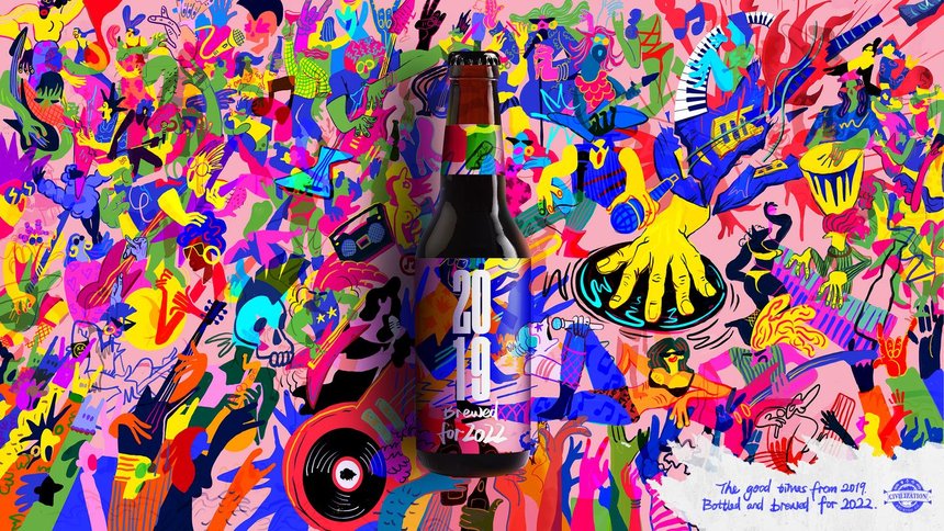 After two blurry years marked by lockdowns, 2022 brought with it some renewed optimism. Everyone was ready to taste that much-needed freedom, that pre-pandemic feeling was bottled and brewed for 2022 with Civilisation Beer. The illustration style embodied the feeling of having a good time in huge crowds, with each label bringing to life something that people are looking forward to doing in 2022 – from beach holidays with sketchy Wi-Fi to real-life concerts surrounded by real-life people.