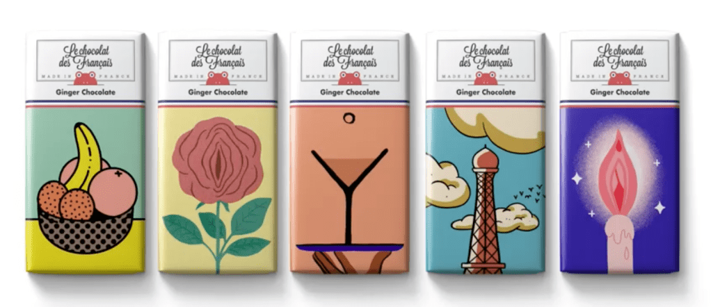 Le Chocolat des Français is a brand known for its creative, illustrated packaging. For Valentine’s Day 2022, the brand created chocolate using ginger, which is considered an aphrodisiac, making it ideal for couples who have fallen into a routine.The brief was simple: create packaging and a campaign that is colourful, fun and sexy, so five packs were created, each with naughty visuals showing five different scenes of bored couples. To avoid censorship issues, the visuals used everyday objects that serve as innuendos when read with the line ‘Spice up your Valentine’s Day’.