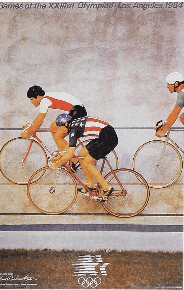 He was design director for the 1984 Olympic Games in Los Angelis. He needed to photograph the cyclists on the part of the track that has a high wall. The cyclists had to complete more than a hundred laps before he felt confident that he got the shot.