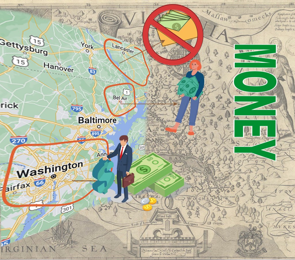 This is the first map of the area where I live – created by Captain John Smith on 1608. (https://www.chesapeakebay.net/discover/history/captain-john-smith)