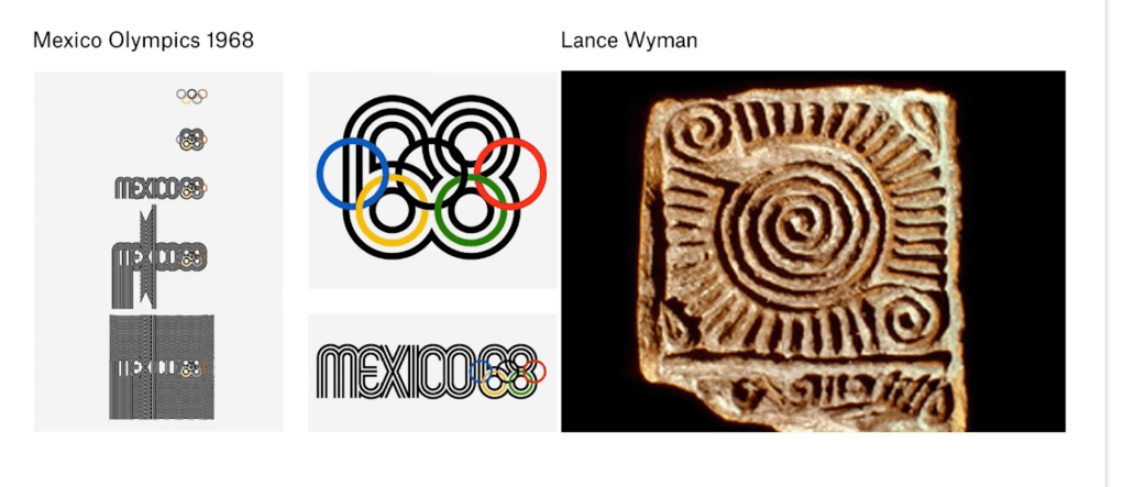 The first example was designed by Lance Wyman in 1968 and this was the Mexico Olympics. Arguably, this was one of the first examples where people really started to lift their heads and appreciate the graphic design that goes into the identities, the Olympic identities.