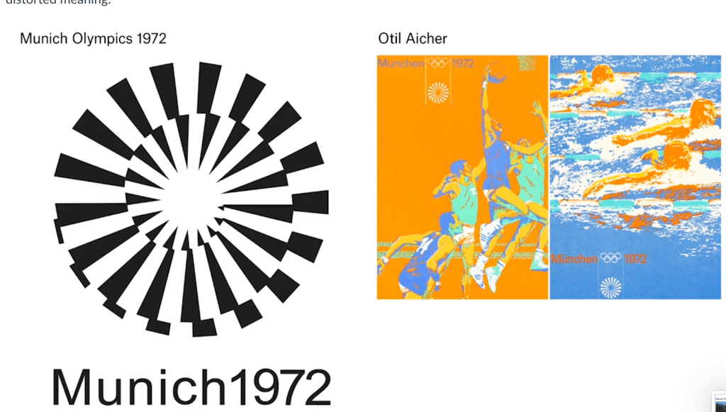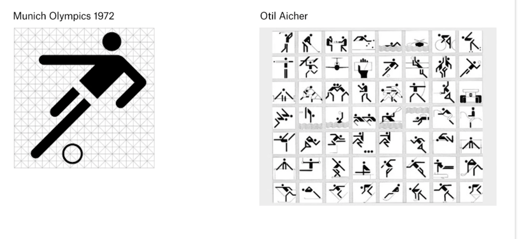 Another interesting example of this is the Munich Olympics, designed by Otil Aicher. This pushed this idea of the system being pushed even further, where Otil Aicher’s very modernist aesthetics are what informed the entire identity.