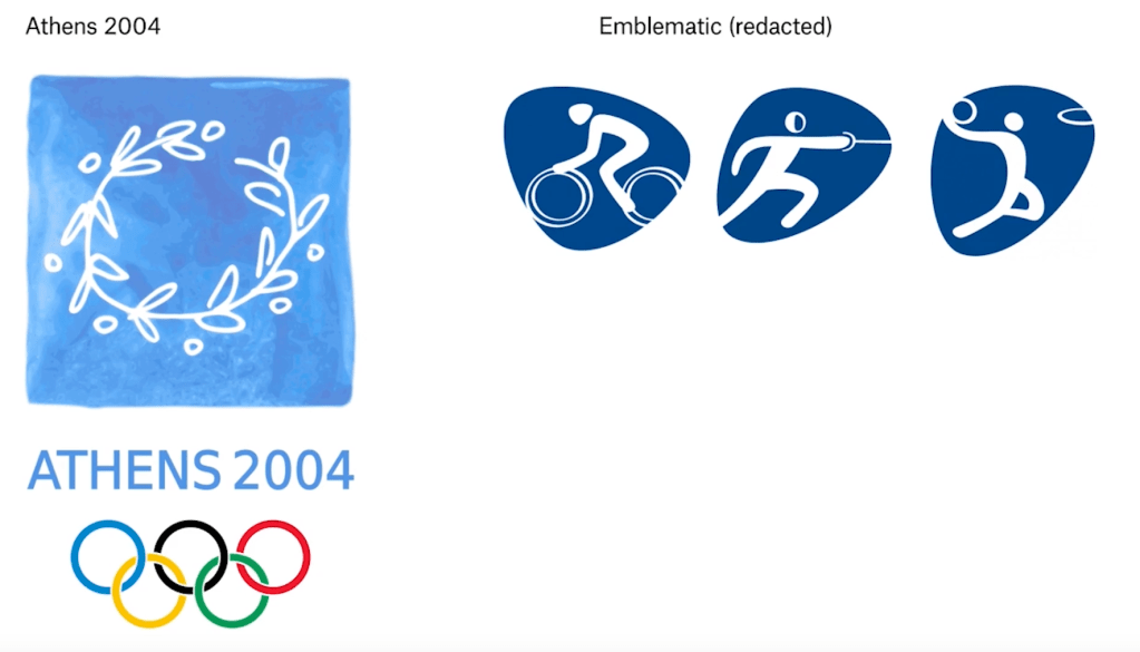 I think that this next example of the Athens Olympics in 2004, this idea of it being emblematic where you see the wreath, is there.