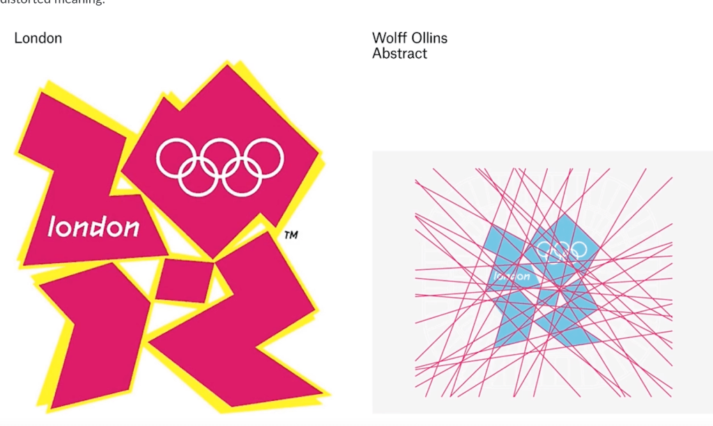 Then finally, just as a point of comparison, when we’re particularly in this week talking about semiotics and letting that influence, if we look at the early examples of the Olympics, this one was actually the first one in London in 1908, the visuals that had to sit with it had to be showing what the Olympics was. It had to say, look here’s an arena, here’s all the countries that are participating, here’s someone jumping over a high jump, because people didn’t have an understanding, a basis to understand, what the Olympics was. So now that we understand over a long period what the Olympics is, it allows the design to not be so literal because we have a semiotic basis that we can build from.