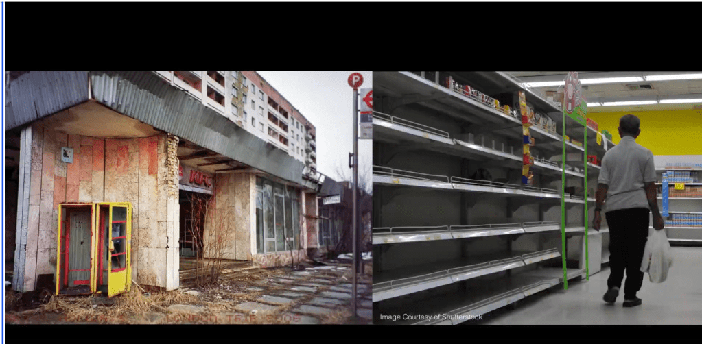 -economic instability, broken food supply, empty supermarkets