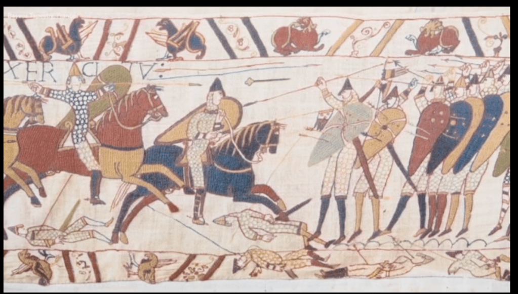 The Bayeaux tapestry is a stunning piece of design, telling the story of the events leading up to the Battle of Hastings in 1066