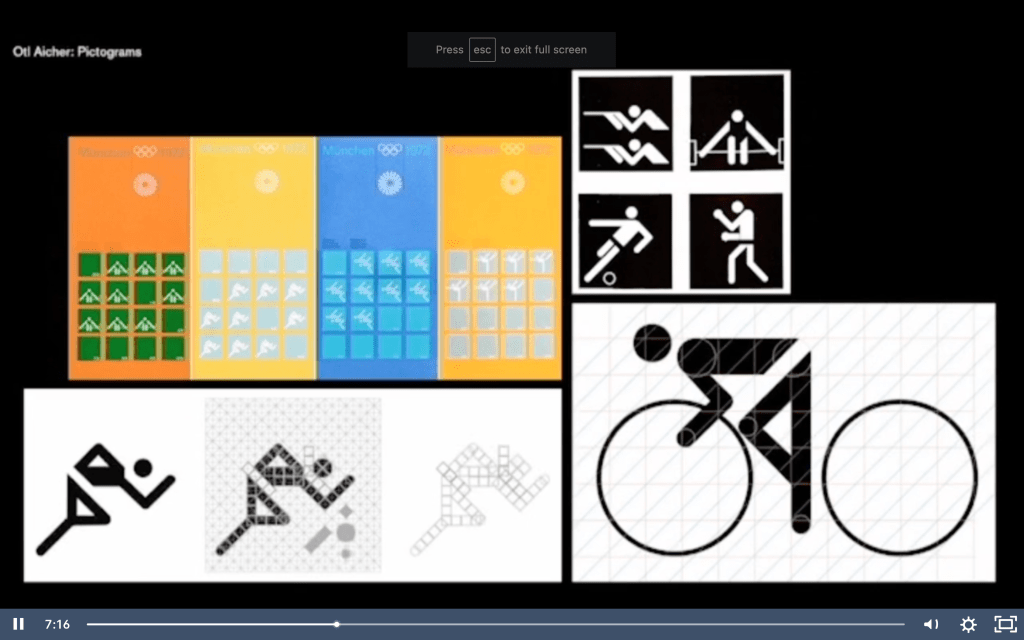 This sentiment was carried through the way-finding of The Design Museum by Cartlidge Levene’s choice to use Otl Aicher’s famous icon suite for navigation, which was designed in 1972 for the Munich Olympics. This is not the first time Aicher’s icons have been used since 1972, there are now over 700 pictograms in the range and new ones are constantly being created. He was originally inspired by the angles of the new buildings designed for the Olympics and created a simple grid system to base all the icons on, adding colour to the designs in application to add more energy and vibrancy. The original set has been a major influence on icons around the world