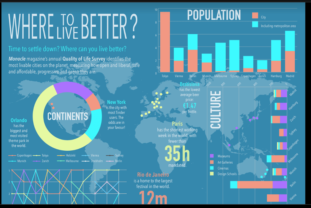 The publication Monocle as one of the best commissioners of interesting, effective infographics – they are obviously well known for creating good looking designs, but their infographics also show data clearly.