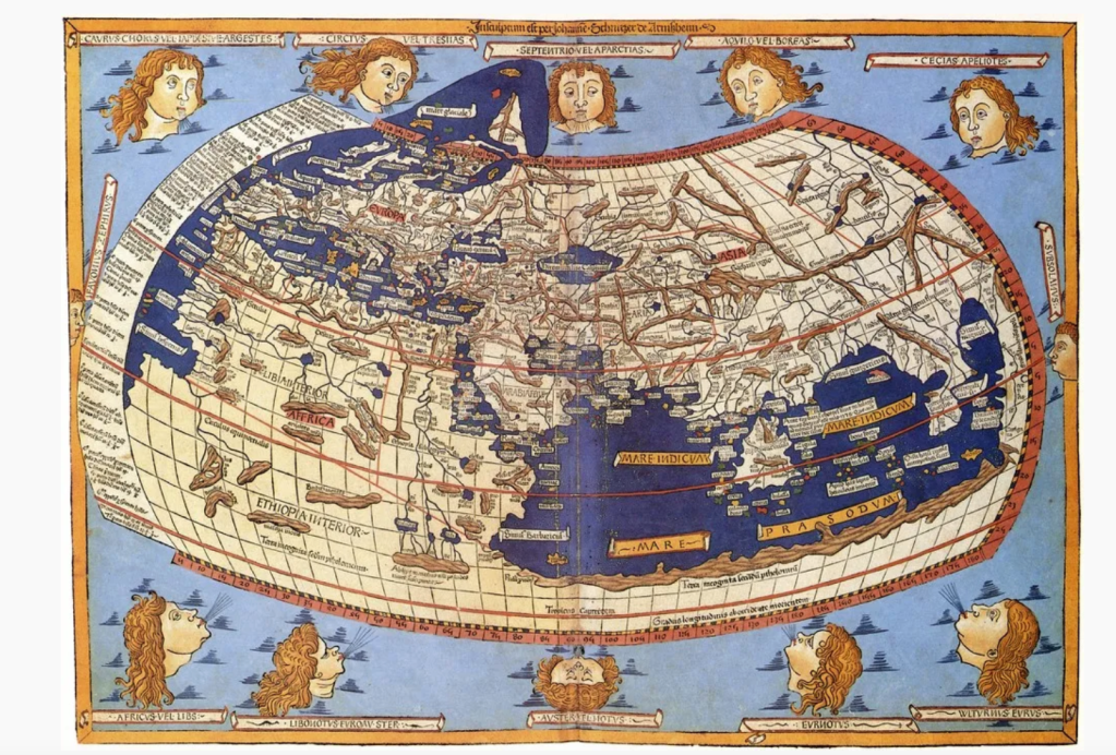 The map designed by Claudius Ptolemy (between 85 and 165 A.D.) of a spherical earth was still used in the 14th century as a reference guide. The image below is a 15th century rendition of this map – which may be the information visualization with the highest level of longevity to date.
