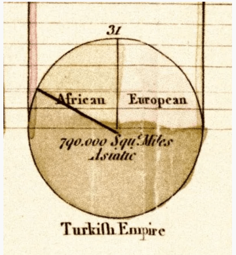 William Playfair invented, or at least was the first to use, the line graph, the circle graph, the pie chart (pictured below) and the bar chart, in visual representations.