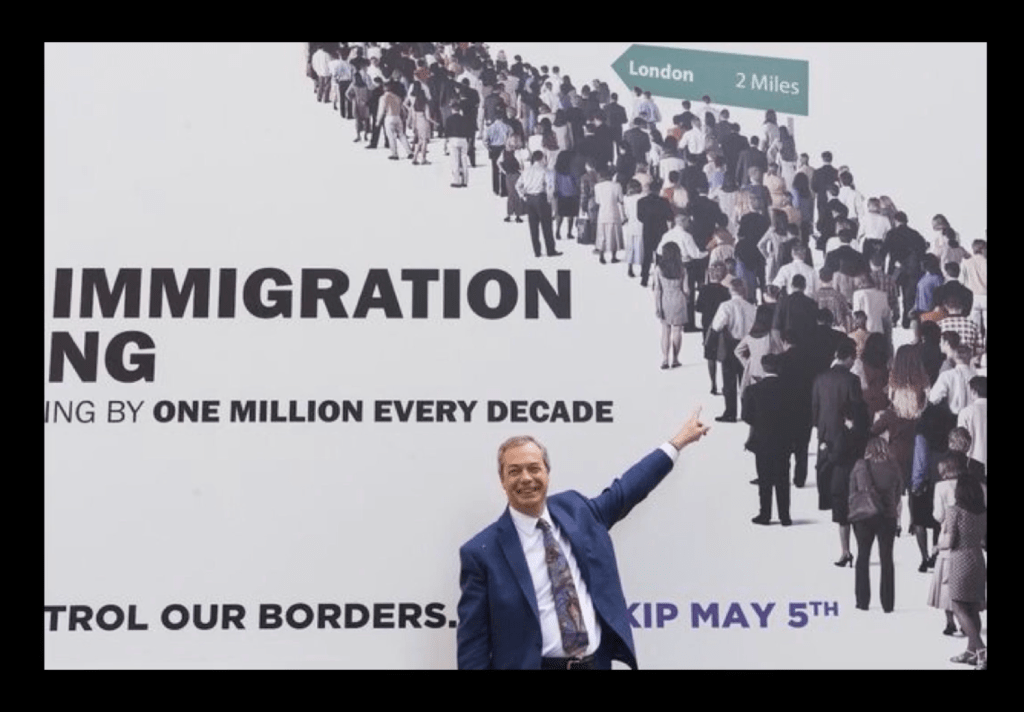 This image of former UKIP leader Nigel Farage in front of a 2015 General Election campaign poster clearly demonstrates the misuse of numbers, and statistics around immigration, to stoke a particular perception and politicization of demographic change.