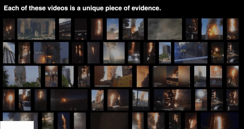 By inviting members of the public to submit their video footage of the fire, they intend to build a complex and evolving picture of what happened and why.