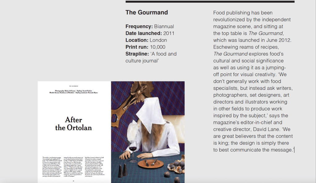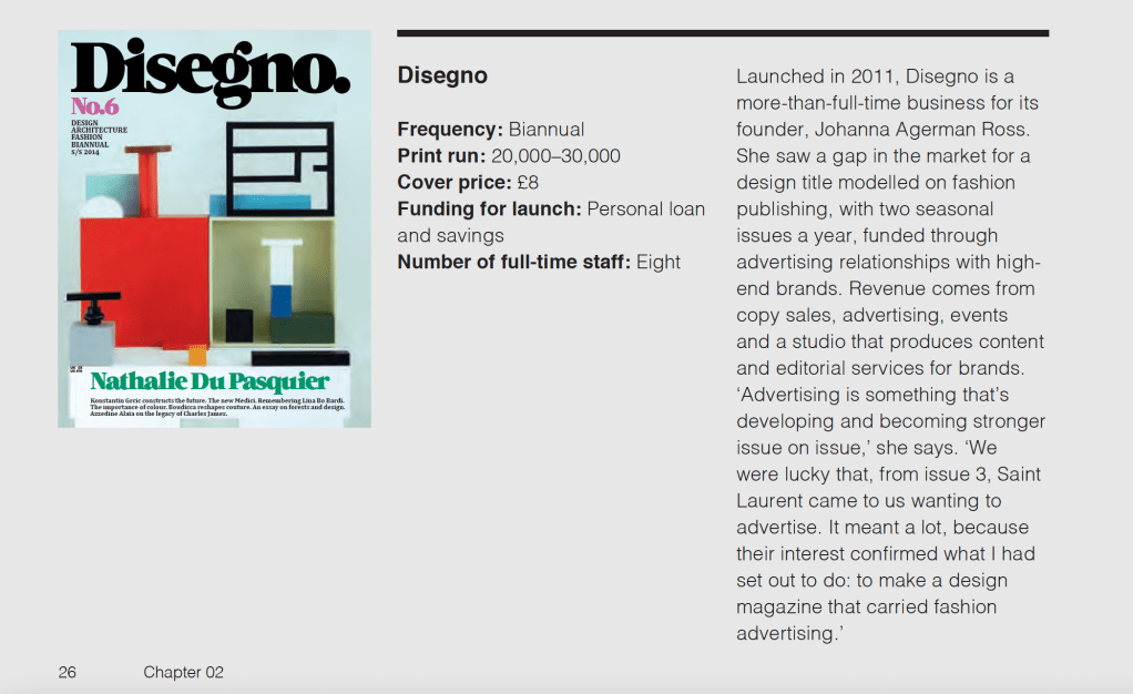 Yes, it’s sort of a survey of the independent magazine publishing landscape, in that I wanted the book to bring together all of the knowledge and knowhow of people independently publishing magazines. In the gamut, from really small zine-like magazines to the opposite end of magazines, like The Gentlewoman, where it is an independent magazine but is quoting 100,000 copies and has huge advertising revenues. Looking at the gamut of that, bringing all viewpoints and the knowledge and experience together to help all people start their own publishing projects.