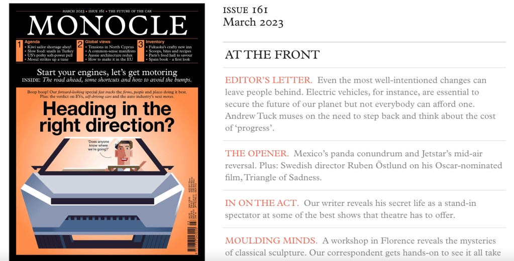 Monocle magazine is often cited as a pioneering example of a successful independent publishing model. In September 2014 it was valued at $15 million after it sold a 5 per cent share to the publishing arm of the Japanese news agency Nikkei. The magazine is just part of a brand that also includes a shop, a radio station and cafes, all run in parallel with editor-in-chief Tyler Brûlé’s successful high-end branding agency, Winkreative