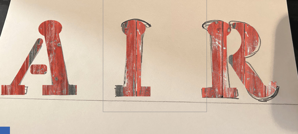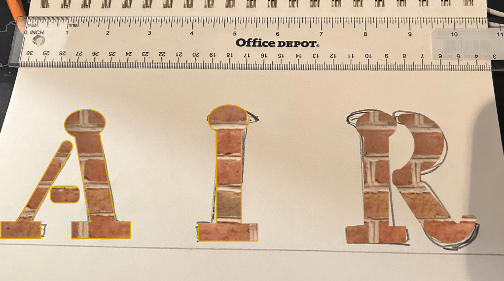 Then I use the brick texture to fill the letters with (this texture represents the today progress of the town).