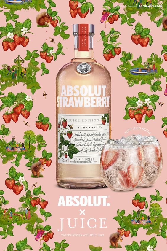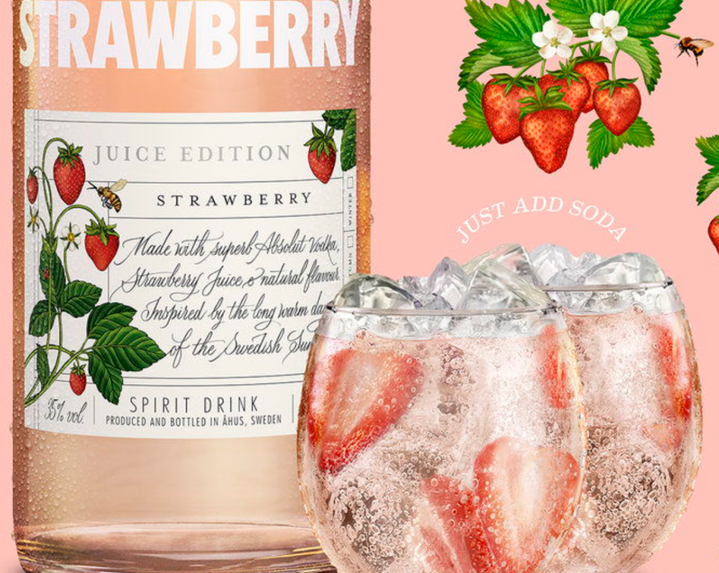 “Made with superb Absolut vodka, Strawberry juice, natural flavor. Inspired by the long warm days of the Swedish Summer.
