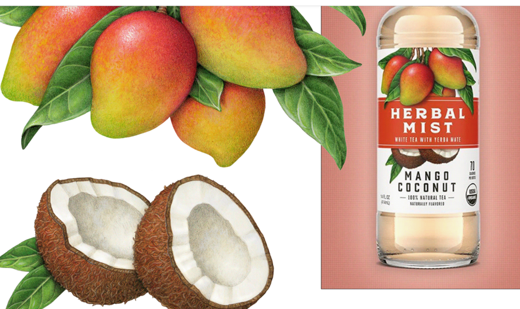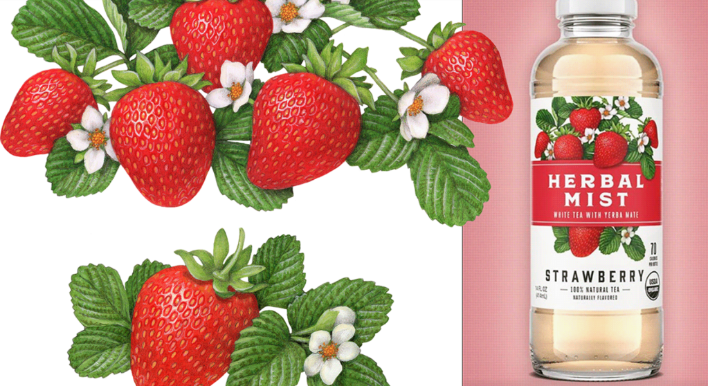 Brownstein Group, the longest-running independent marketing communications agency in Philadelphia, asked Douglas Schneider to create original illustrations for Herbal Mist’s newly redesigned packaging on both glass and plastic bottles for 2019.