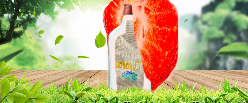 In the beginning of the summer on 2019, the Swedish vodka company Absolut launched a spirit combined wit strawberries and apples creating the Absolut Juice Edition. The design is created by Mariana Rodrigez. She uses the fruits in their natural form – strawberries with their vines and apples hanging from trees.