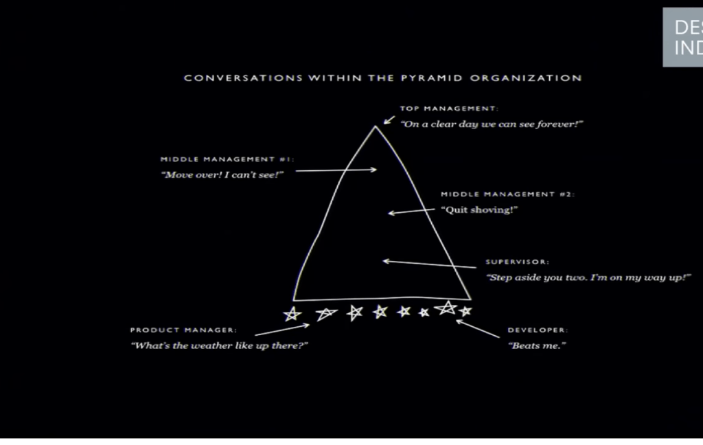 He also goes on to talk about how design is sometimes its own worst enemy in what he terms the ‘design thinking paradox’: “Design as a discipline is not well designed to be understood. Part of this challenge is to communicate about what design is.” He shows an example of Florence Nightingale who was according to him is one of the first data scientists. She used an infographic to plot and make visible the amount of soldiers who died in hospitals in relation to those who died on the battlefield. She used this design as a way to advocate for improved sanitary conditions in hospitals. Design is most powerful when it tells a story about something that matters, in a voice that matters, says Maeda. He ends the talk by revisiting the organisation structure and advocates for thinking of it as an octopus. Despite its tiny brain, an octopus is one of the few organism shown to have the ability to plan and whose eight tentacles have the ability to act on their own, making it a good example of a smart, cooperative and trusting organisational structure.