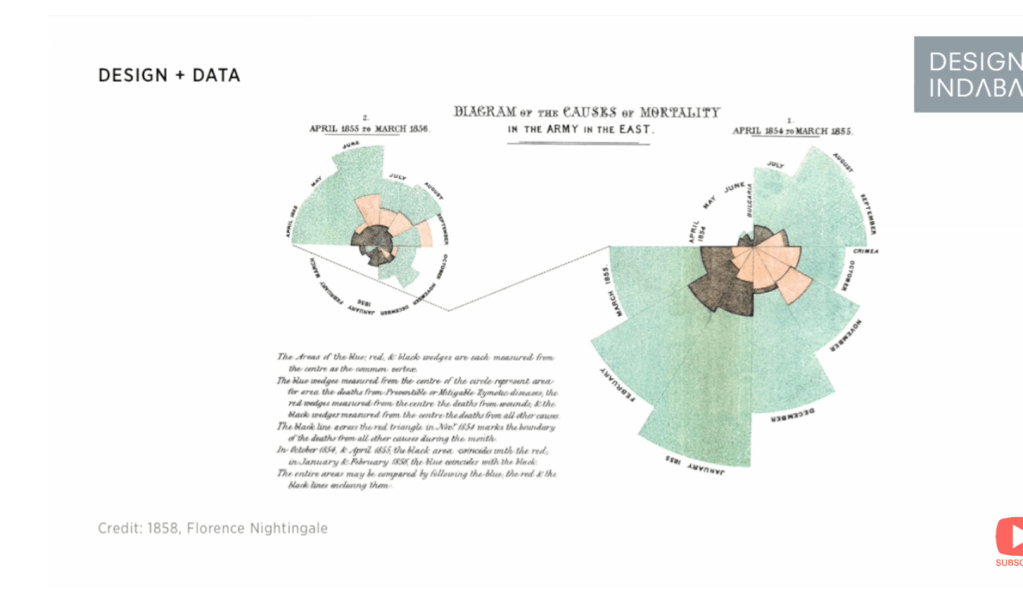 The blue are the solders dying in the hospitals – so, she convinced them that the conditions in the hospitals are veery important. Design is powerful.