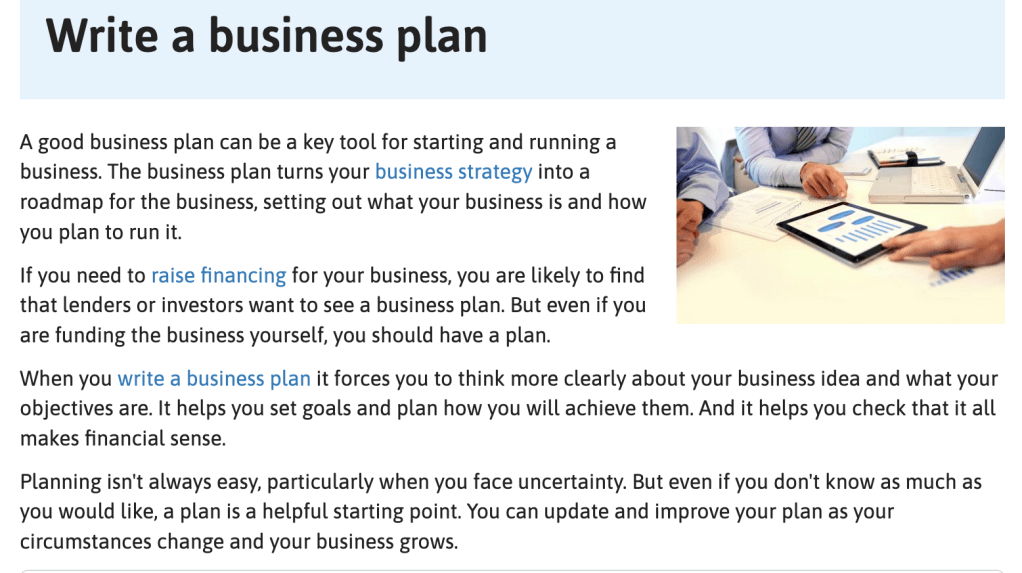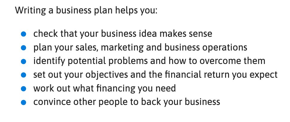 “Your plan should demonstrate that you understand the market and have thought about what you are going to offer, whether you need staff or premises, and so on. The plan must include financial forecast showing the costs and cash flow you expect and any funding you need to raise.”