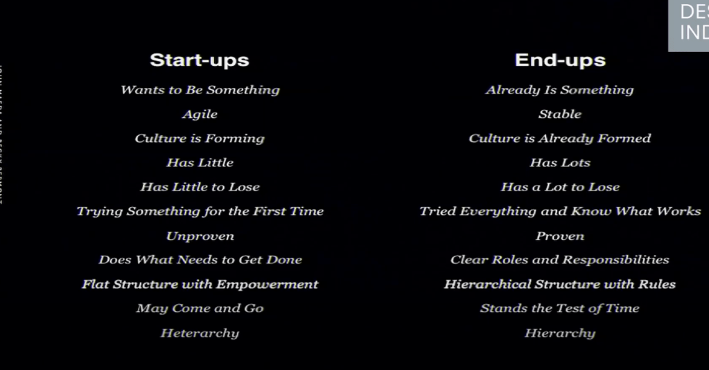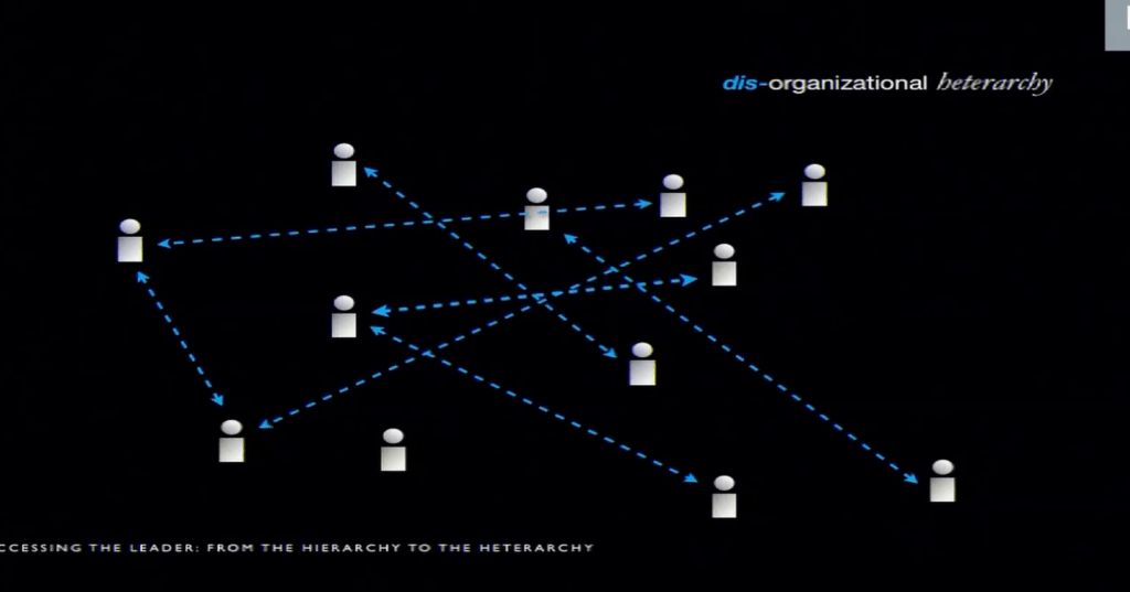 He is saying that things and organizations now days have become more chaotic – it is a problem of the leadership design.