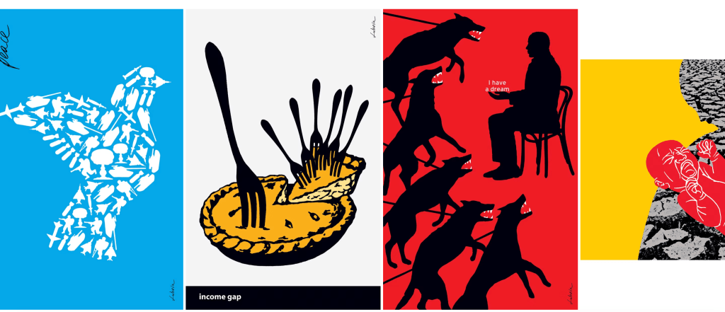 “Internationally renowned, New York-based Luba Lukova is regarded as one of the most original image-makers working today. Whether by using an economy of line, color and text to pinpoint essential themes of humanity or to succinctly visualize social commentary, her work is undeniably powerful and thought-provoking.”