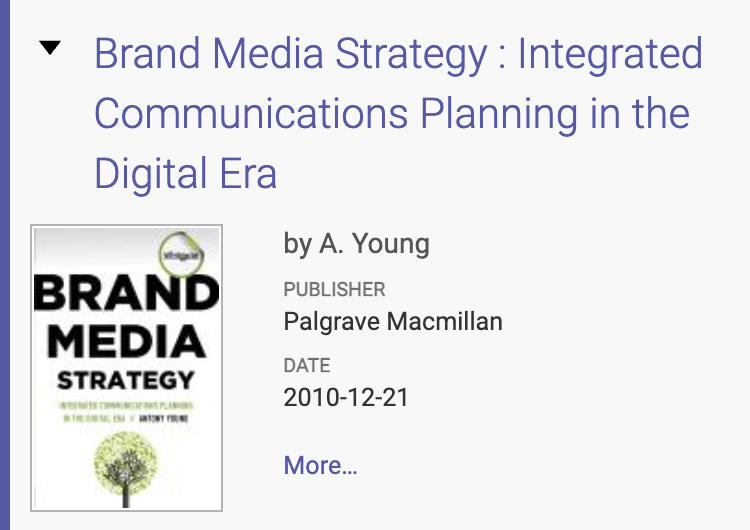 1. Young, A., (2011). Brand Media Strategy – Planning in the Digital Era