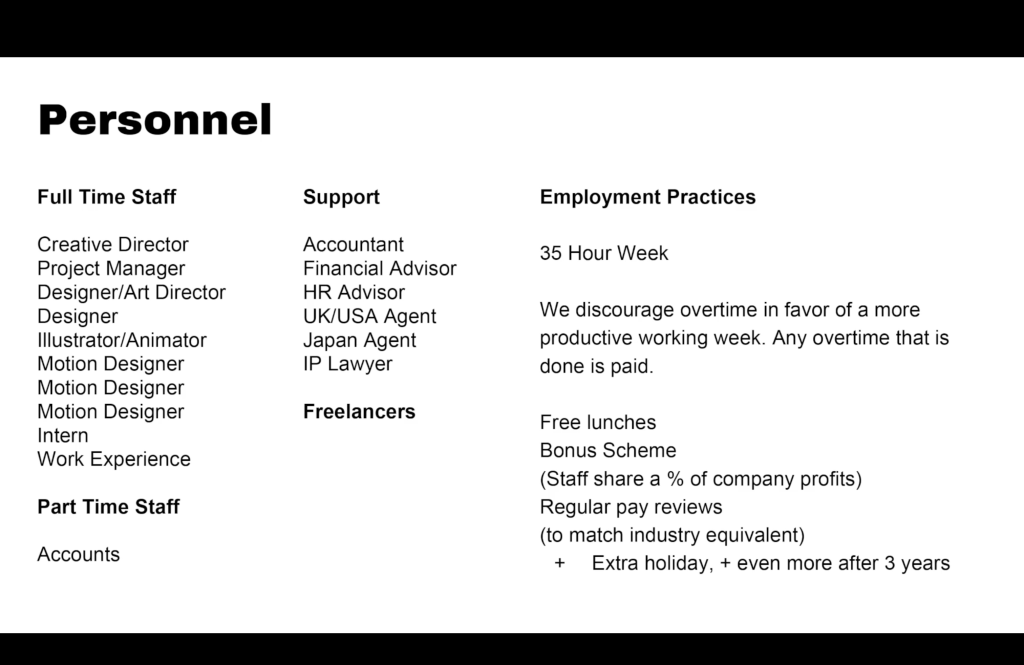 Kate oversees the whole business and here she explains the structure of it: “the way the personnel is run, and this has been pretty consistent for the last three years, is there’s me, so I operate as the creative director. I’m assisted by a project manager, which is becoming more of a full-time role. In the past, and still regularly to this day, most of the team managed their own projects with the support of a project manager, rather than the project manager exclusively running the projects. Then we have two more designers, an illustrator, animator, three motion designers and then we have a permanent intern position and a permanent work experience position. The intern position is usually a graduate or someone who is looking for a full-time career in design or motion design. Our work experience placements are for two weeks and they are for a young person that is curious about the industry and wants to gain some experience. The main difference between those are an internship is paid, and the work experience is part of the course or part of that student’s practice within their college or university. We also have support from the part-time accounts department, who make sure we get paid, and make sure people who work for us get paid.
