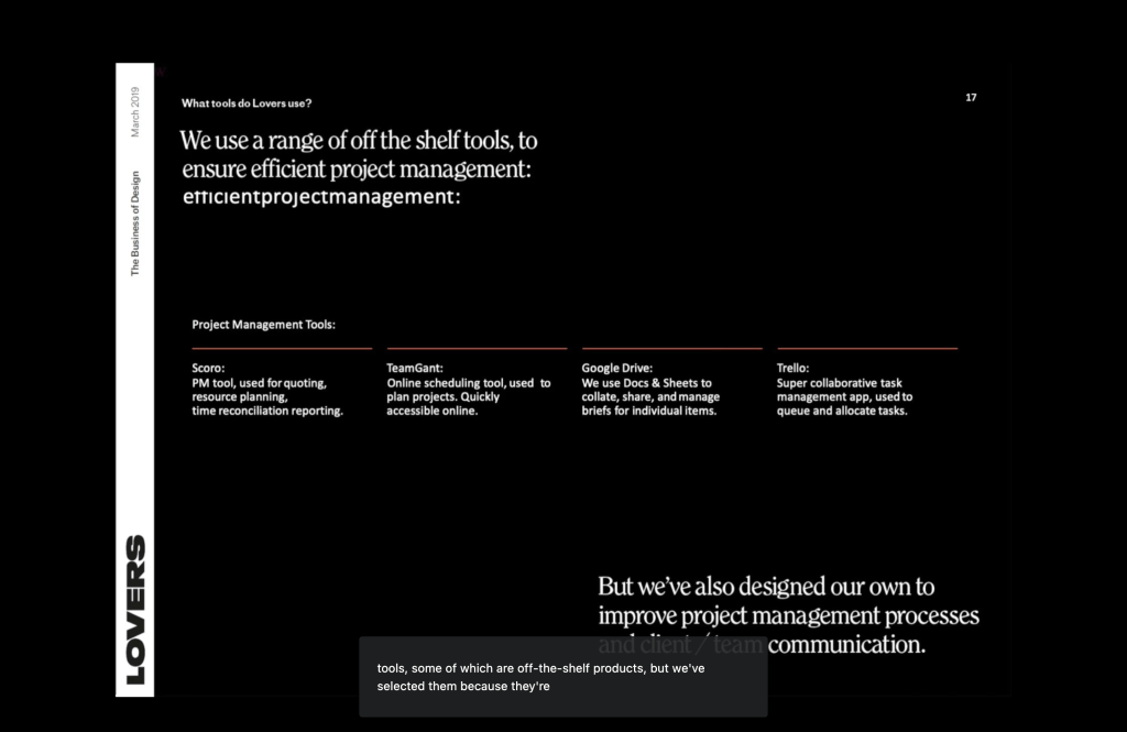 We’ve also designed a bespoke project tracker, which is a way to keep clients in check regarding how much resource they are using on a project versus what was quoted.”