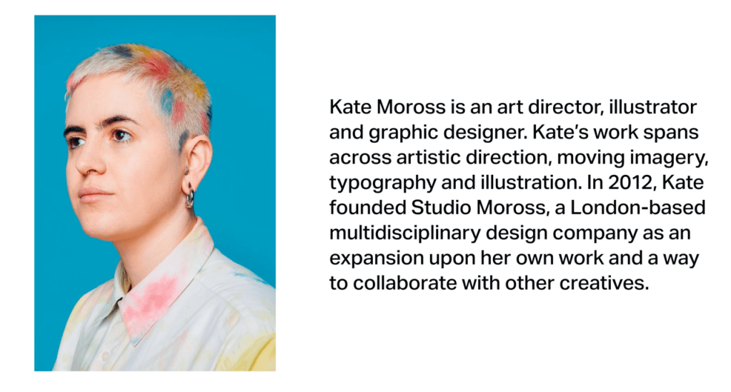 The first one is Kate Moross. She is founder of studio Moross, which is a design studio based in Stockwell in South.