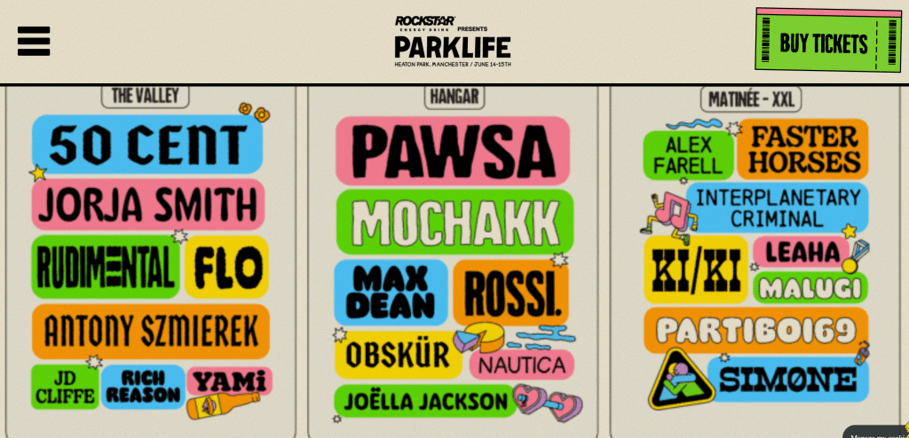 I enjoy going trough the work created by the Moross studio – especially one of their projects about the Parklife festival – the typefaces and the colors that they used are so unique.