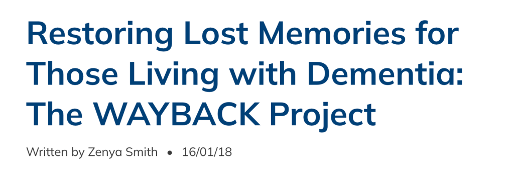 2. Restoring Lost Memories for Those Living with Dementia: The WAYBACK Project (2017) Available from: https://www.elder.org/articles/restoring-lost-memories-for-those-living-with-dementia-the-wayback-project/