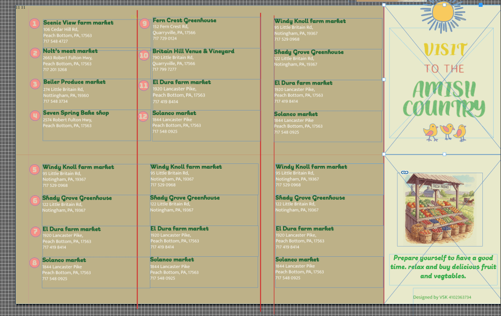 So, I have been collecting business cards of all the places that I have been and created a small map – the file is 2 pages – back and front – so, each side had 8 pages – I will folded after I take it the printer and make the final version of the map