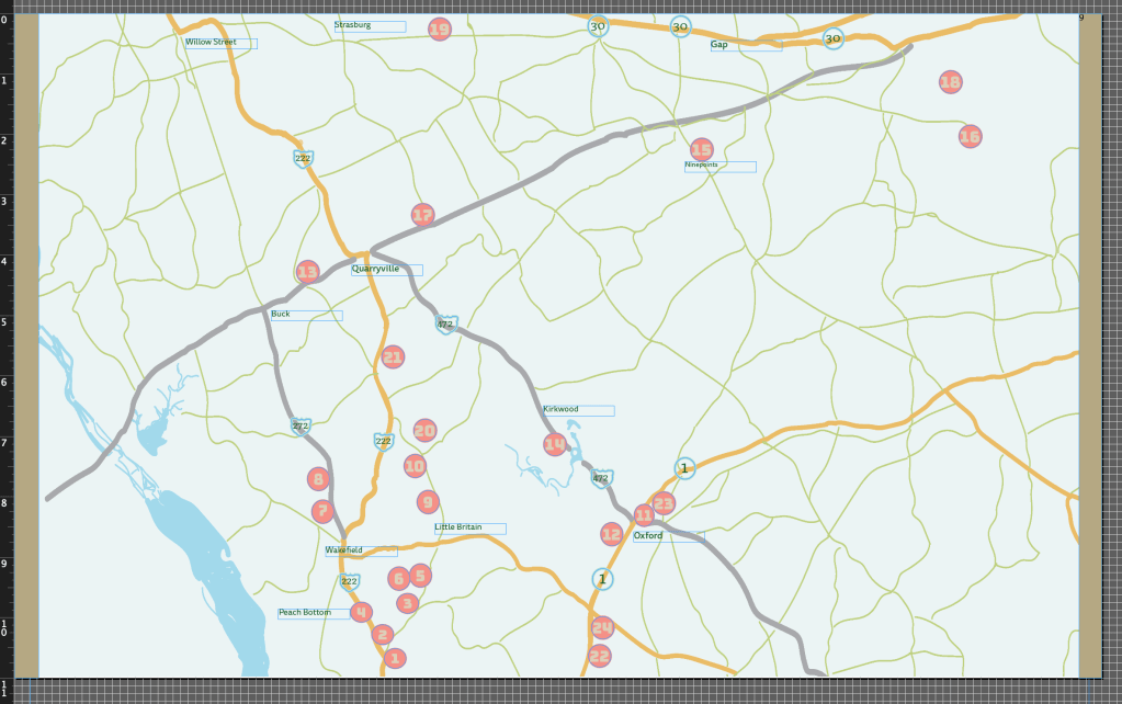 Again – this is small map – the file is 2 pages – back and front – so, each side had 8 pages – I will folded after I take it the printer and make the final version of the map.