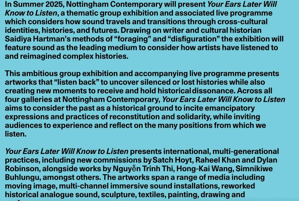 https://www.nottinghamcontemporary.org/whats-on/your-ears-later-will-know-to-listen/